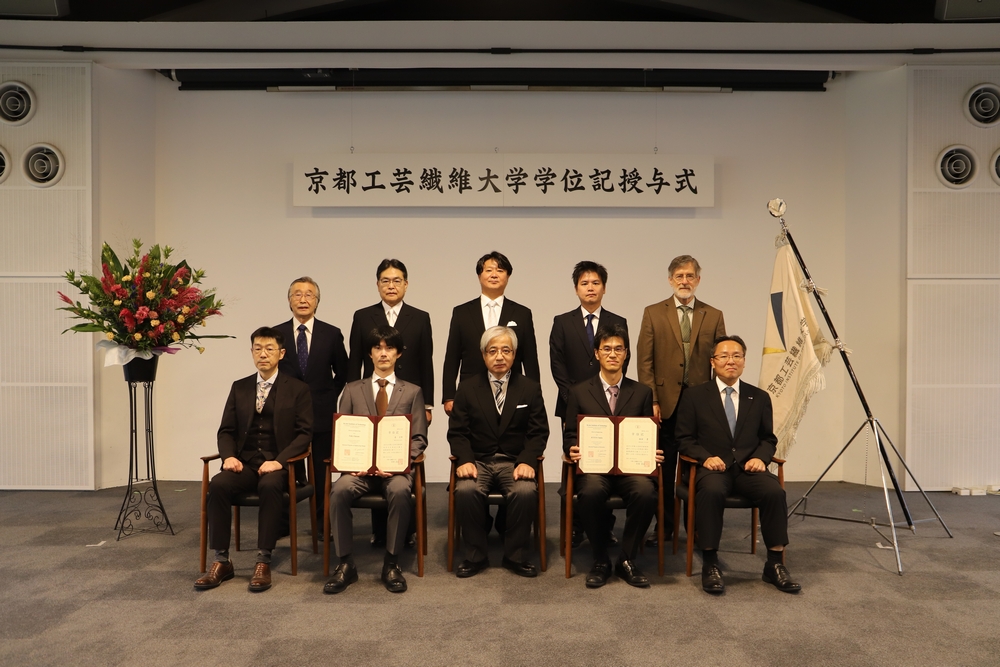 令和4年より、サムコ株式会社(京都市伏見区)会長 辻理氏の支援・協力を得て実施されている産学協働プロジェクト「グローバル企業人ドクター知命飛翔京都プロジェクト」を修了した2名に対し、博士の学位が授与されました。